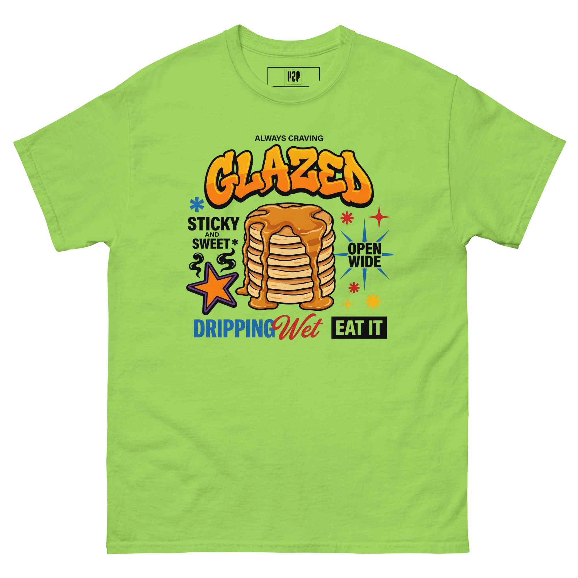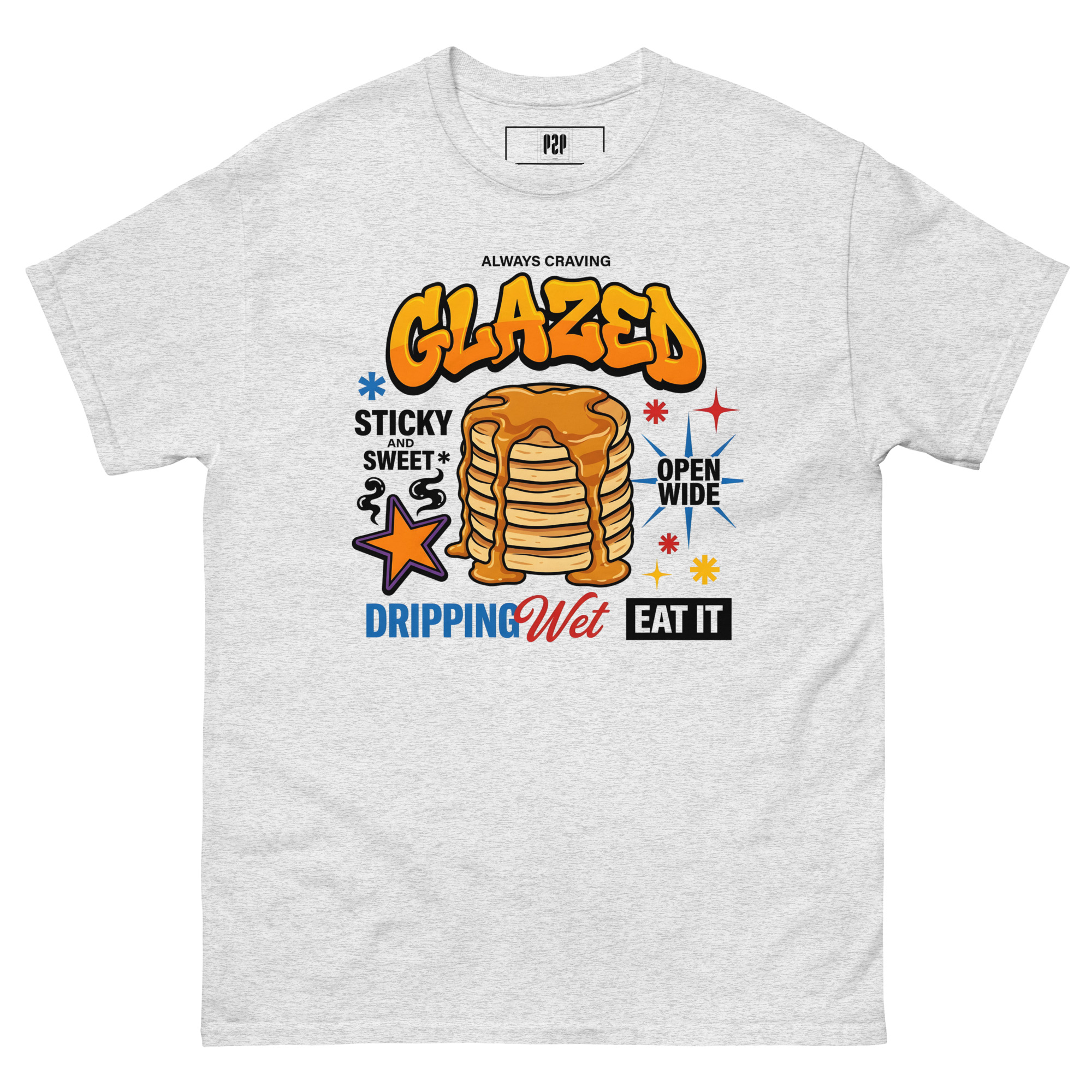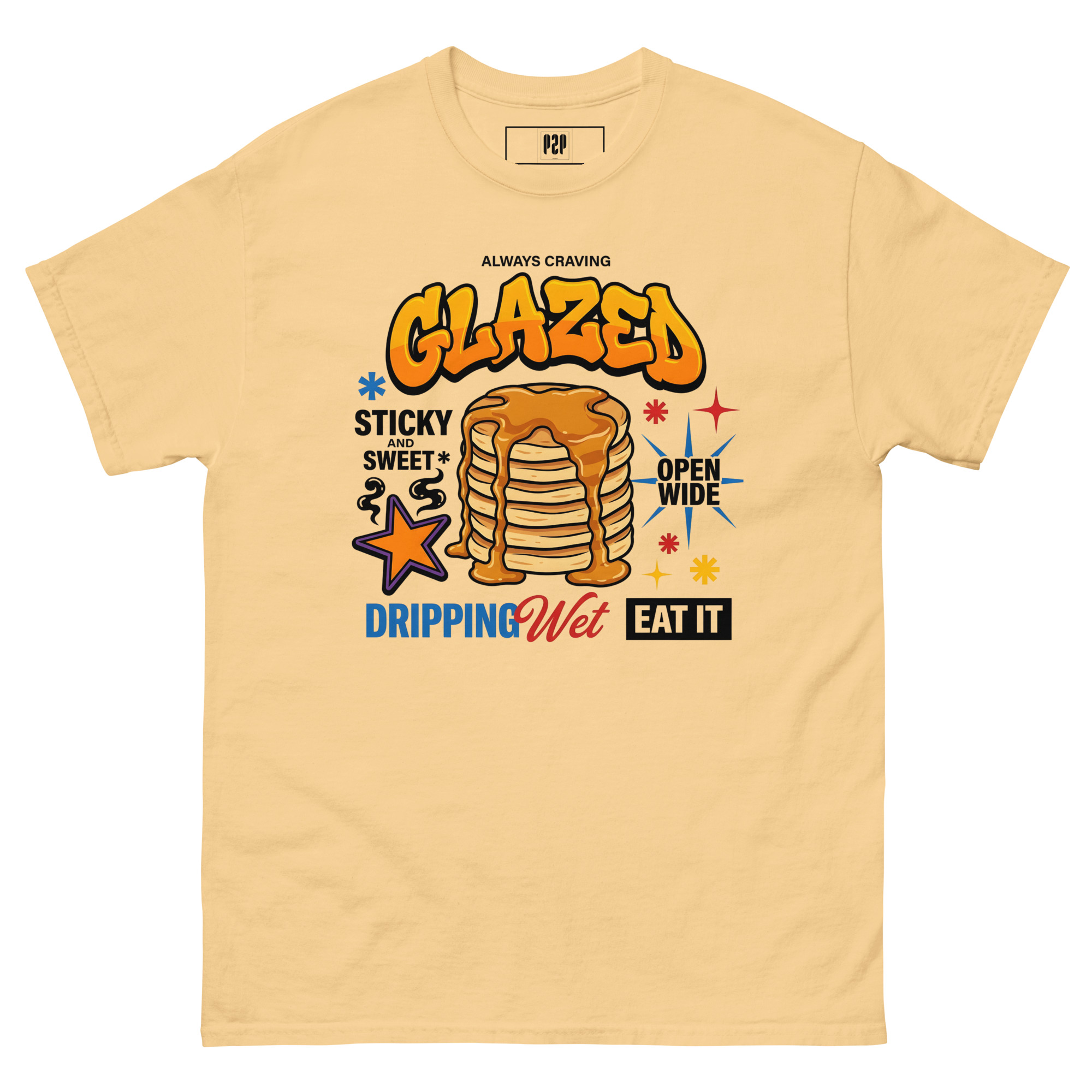 SERVING HEAVY Y2K NOSTALGIA WITH A REBELLIOUS STREETWEAR TWIST, THIS GRAFFITI-STYLE PANCAKE STACK IS FOR THE BOLD AND THE BRAZEN. FEATURING VIBRANT STARBURSTS, BOLD TYPOGRAPHY, AND AN ATTITUDE THAT REFUSES TO APOLOGIZE, IT IS THE ULTIMATE FLEX FOR YOUR CASUAL WARDROBE. WHETHER YOU ARE HITTING THE STREETS OR JUST LOOKING LIKE A FULL MEAL, THIS GRAPHIC TELLS EVERYONE EXACTLY WHAT IS ON THE MENU. ✨