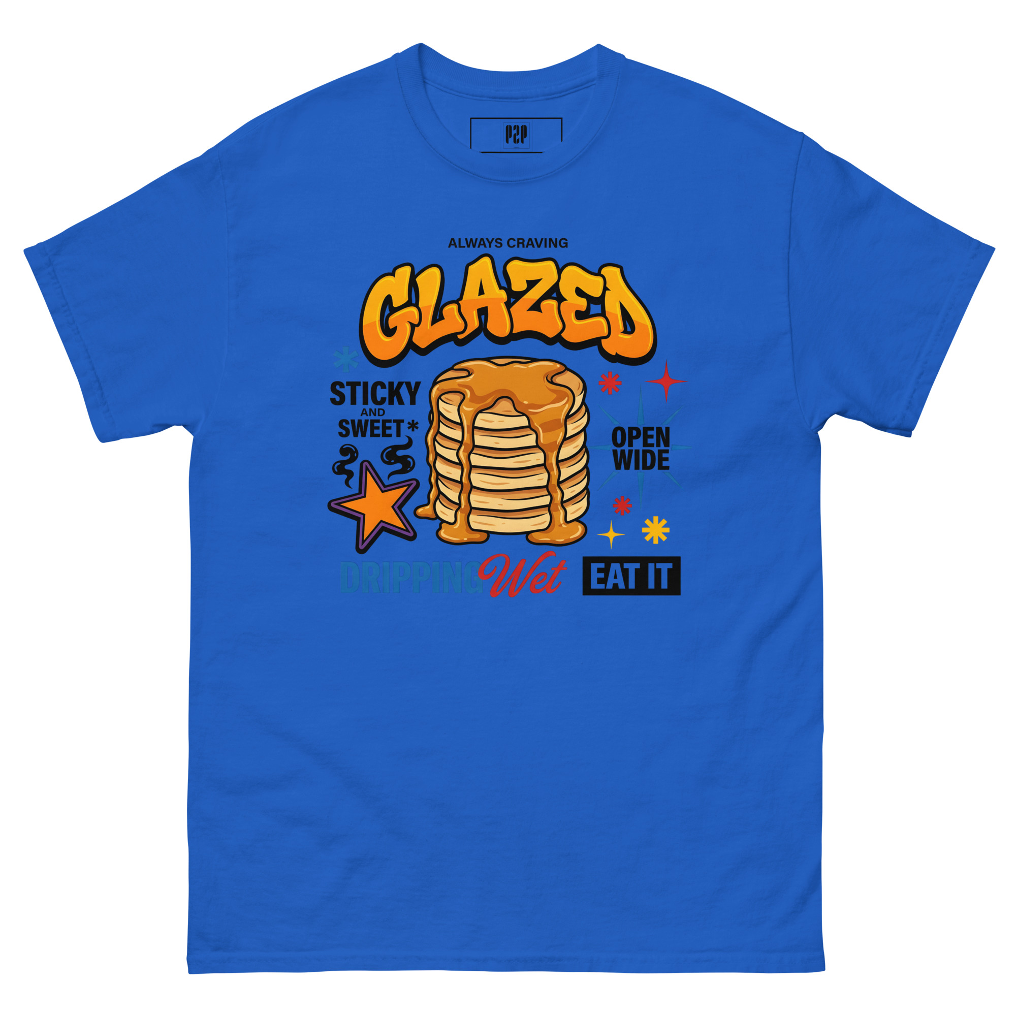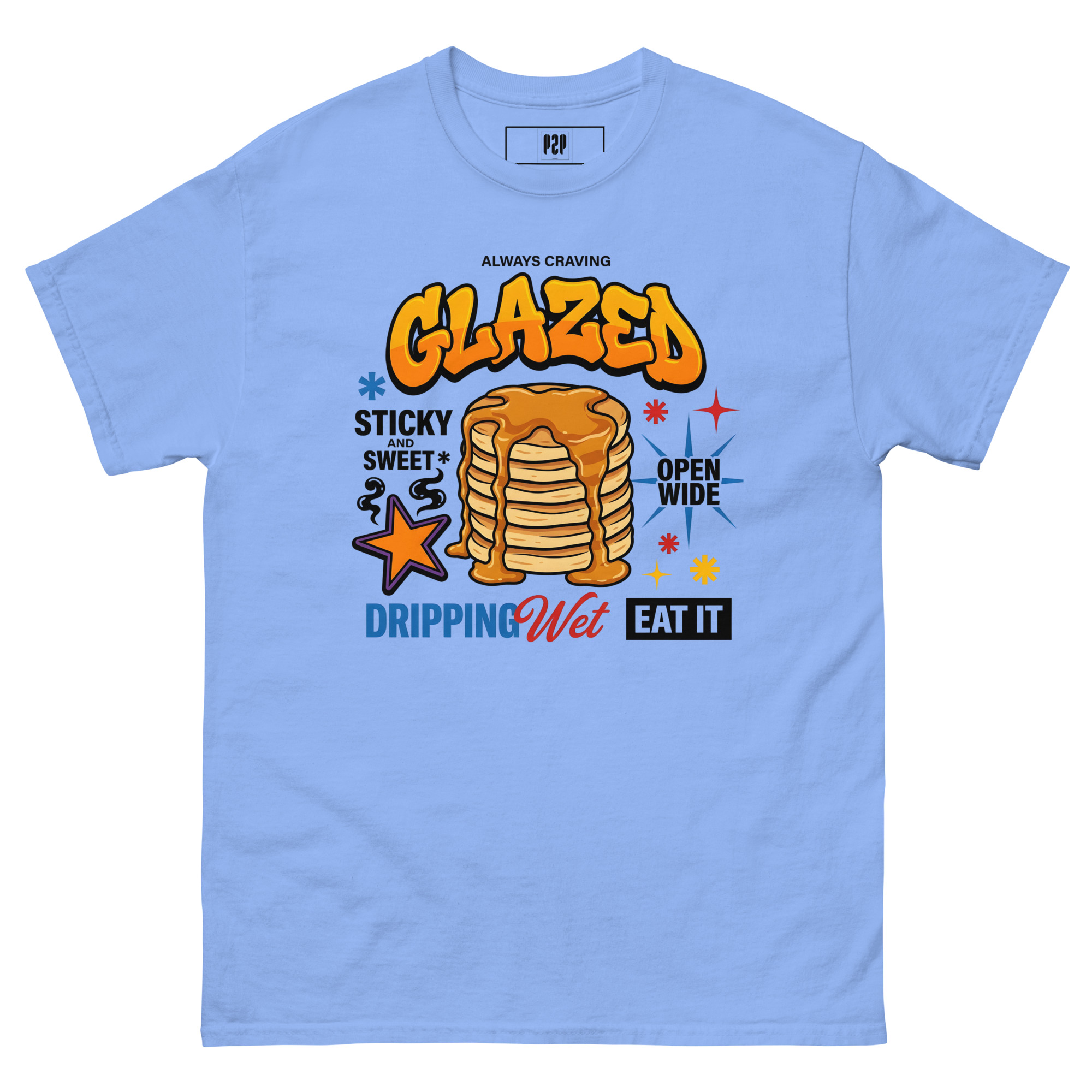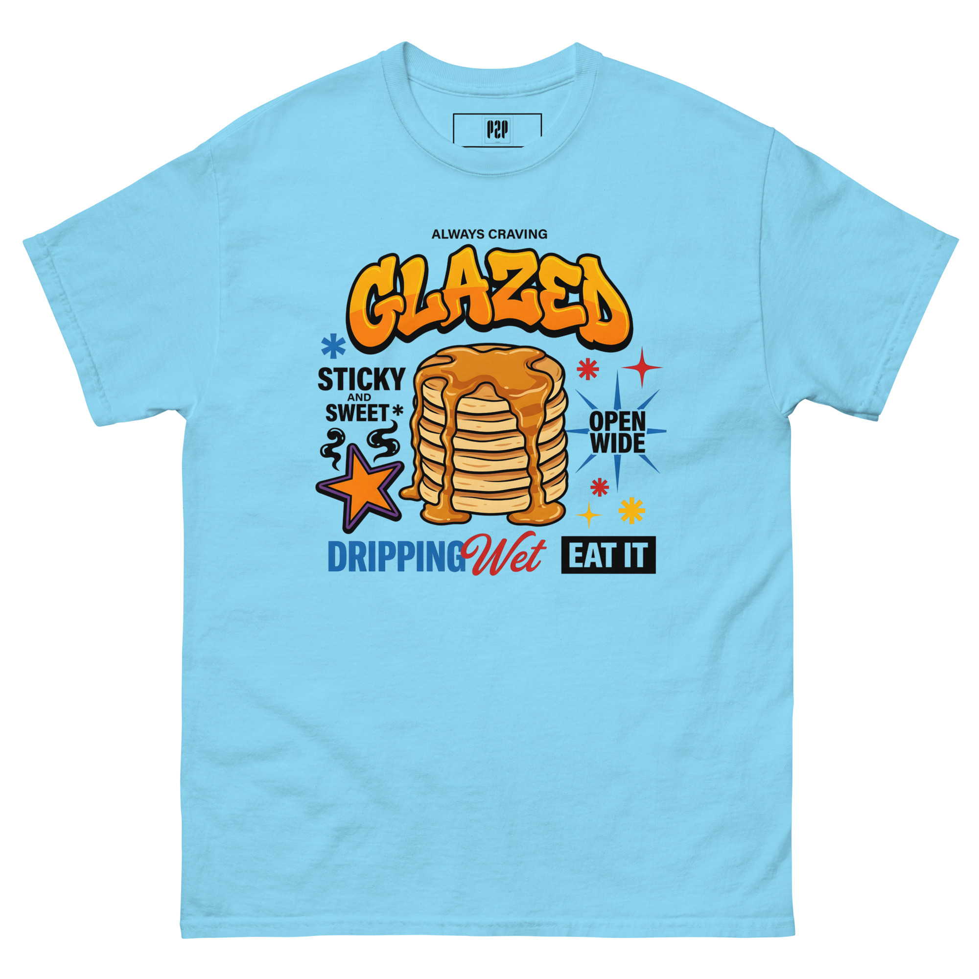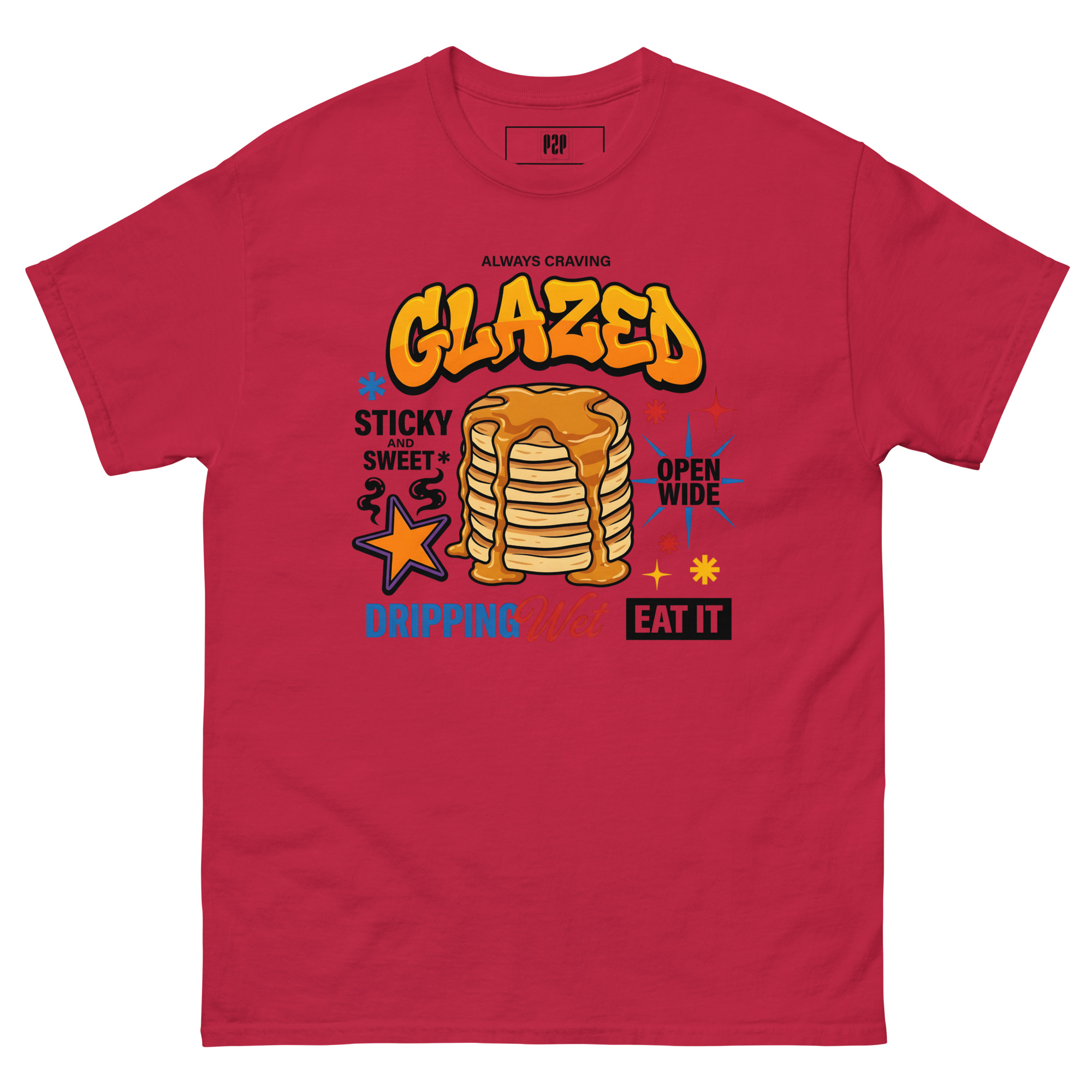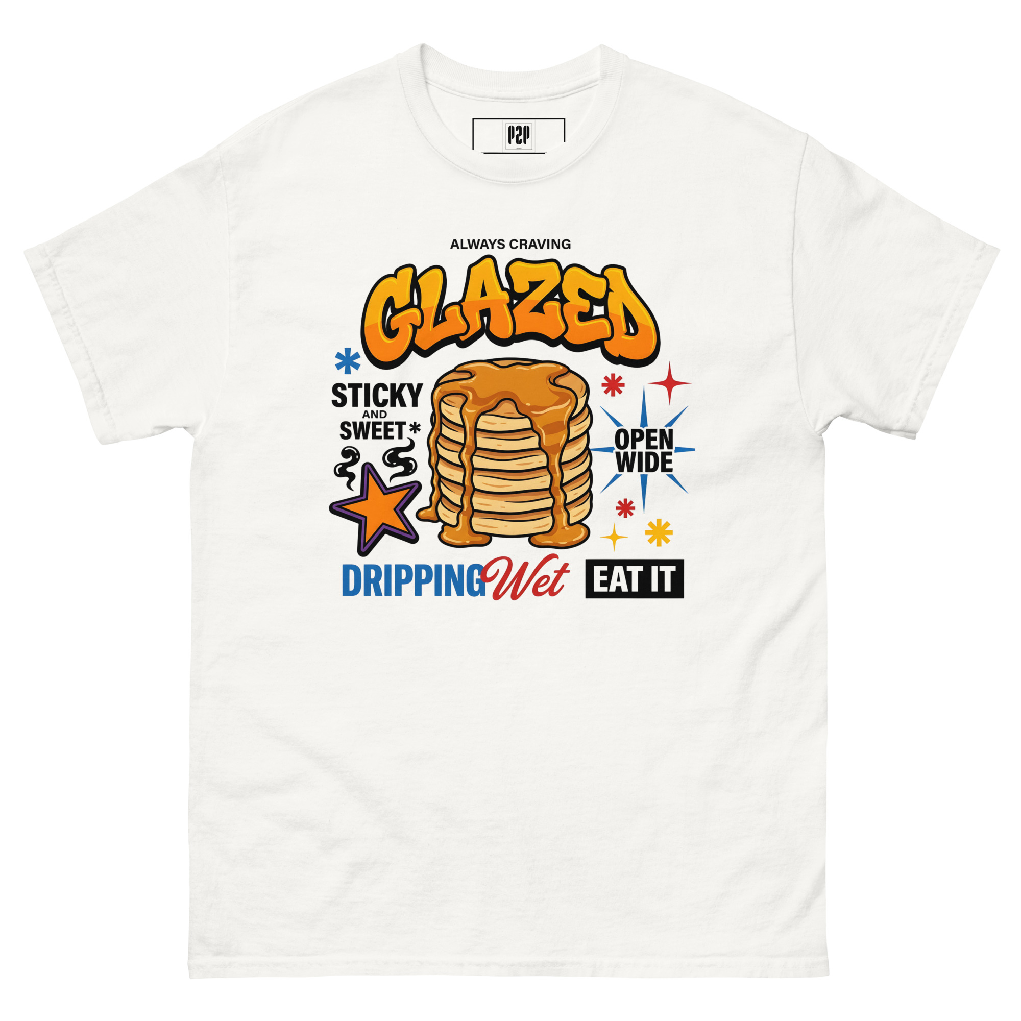“LET’S BE HONEST, YOU ALWAYS CRAVE IT GLAZED. SERVE IT UP HOT, STICKY, AND SWEET WITH A TEE THAT PROMISES TO LEAVE THEM DROOLING. THIS SPICY LITTLE NUMBER TAKES ‘OPEN WIDE’ TO A WHOLE NEW LEVEL, DELIVERING THE PERFECT AMOUNT OF DOUBLE ENTENDRE CHEEKINESS WITHOUT GETTING YOU KICKED OUT OF BRUNCH. WE KNOW YOU LIKE IT DRIPPING WET, SO WE DRENCHED THIS DESIGN IN PURE, UNADULTERATED SAUCE. 🥞💦