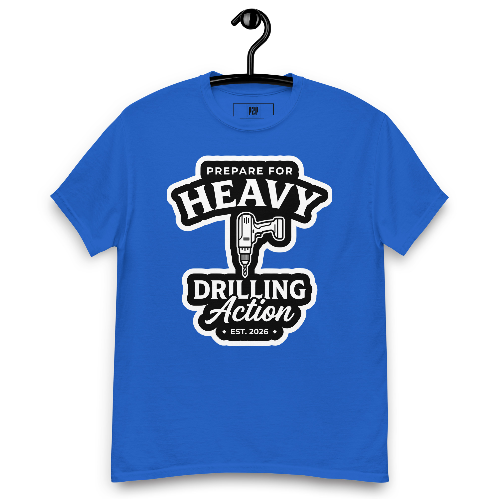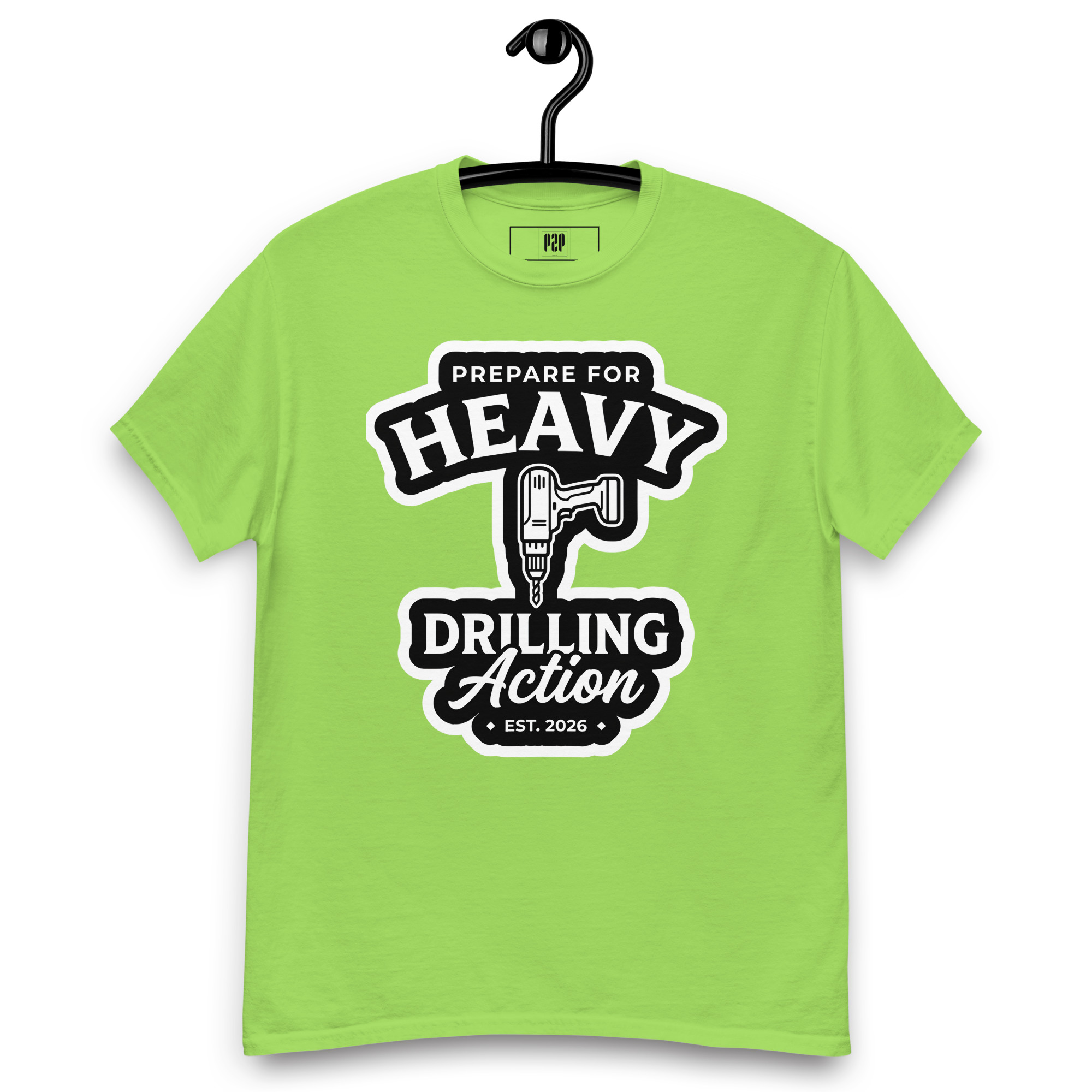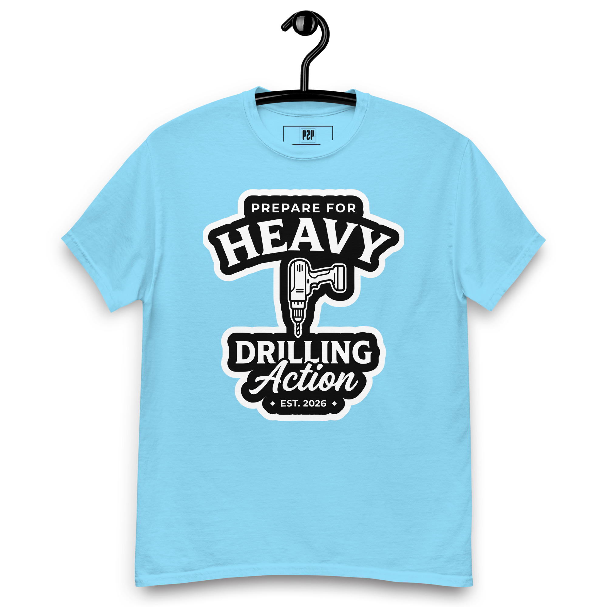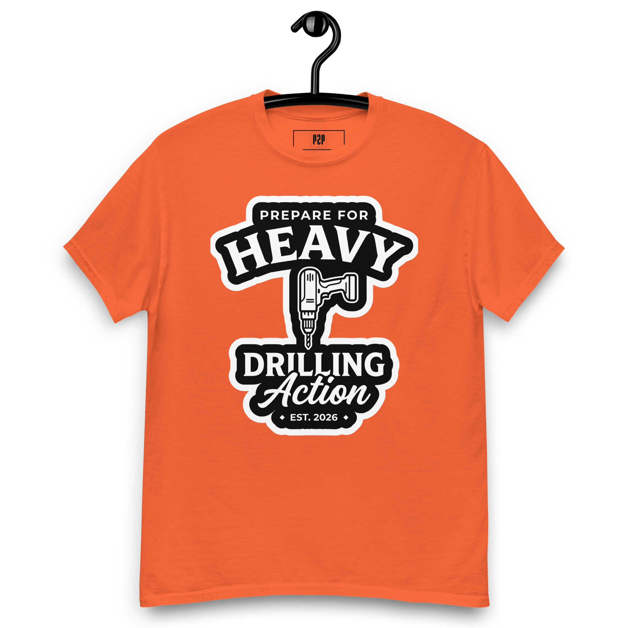 “HOPE YOU BROUGHT YOUR HARD HAT BECAUSE WE ARE ABOUT TO NAIL IT. If you are the type who knows exactly how to handle high-powered equipment, the PREPARE FOR HEAVY DRILLING ACTION tee is your new uniform. It is bold, incredibly cheeky, and perfectly engineered to make everyone in the room do a double-take. Whether you are clocking in for a long shift or just laying down the groundwork for the weekend, this spicy little number lets them know you mean business.