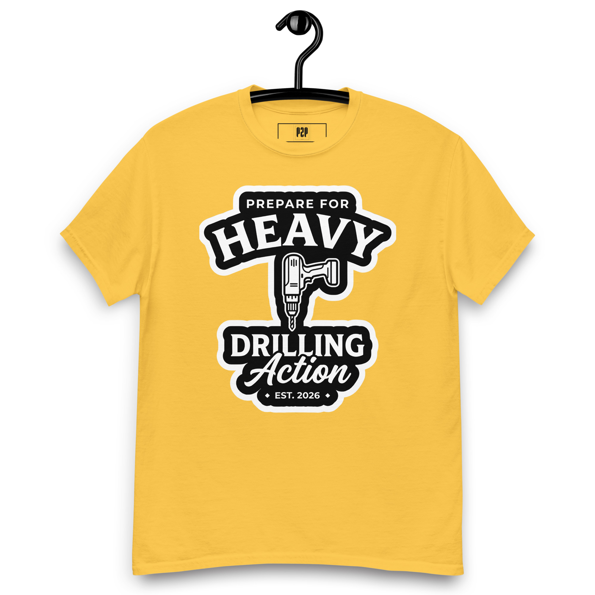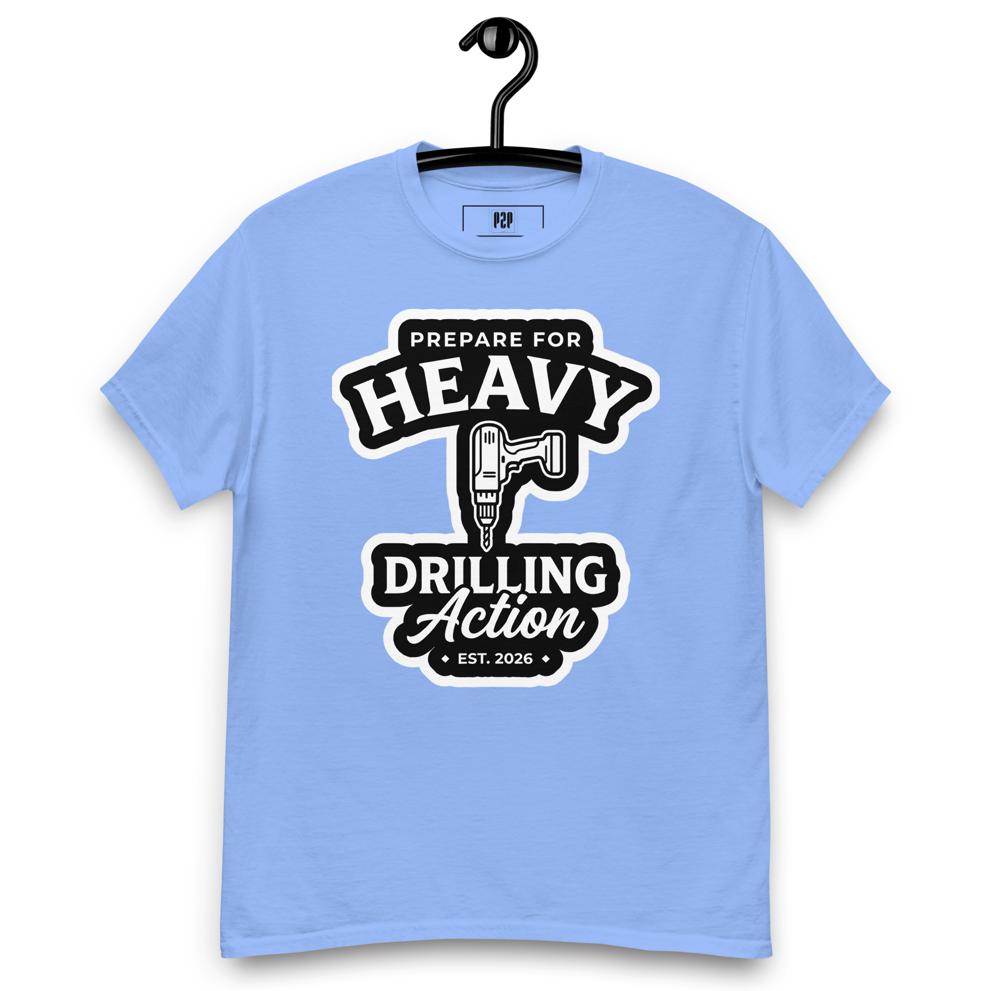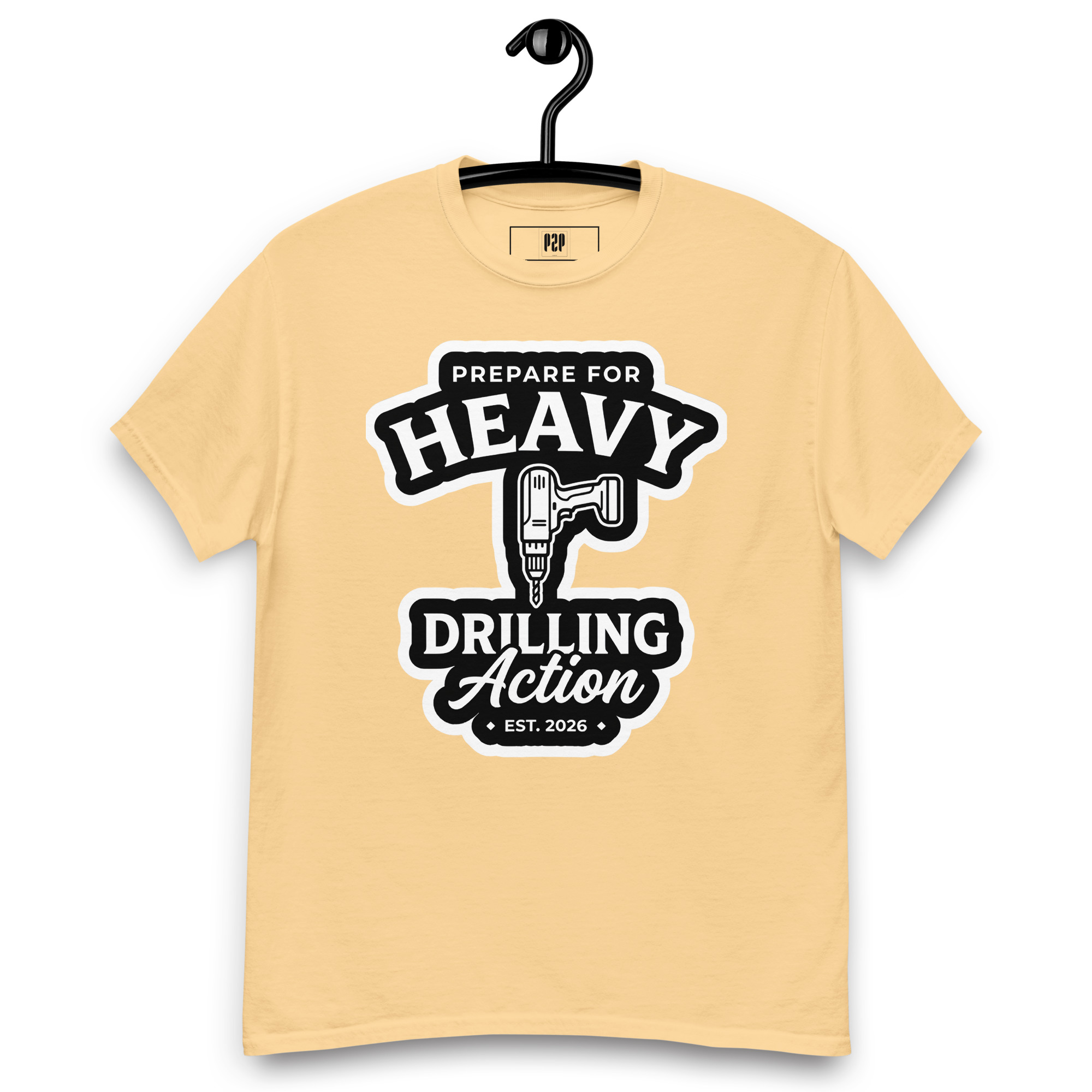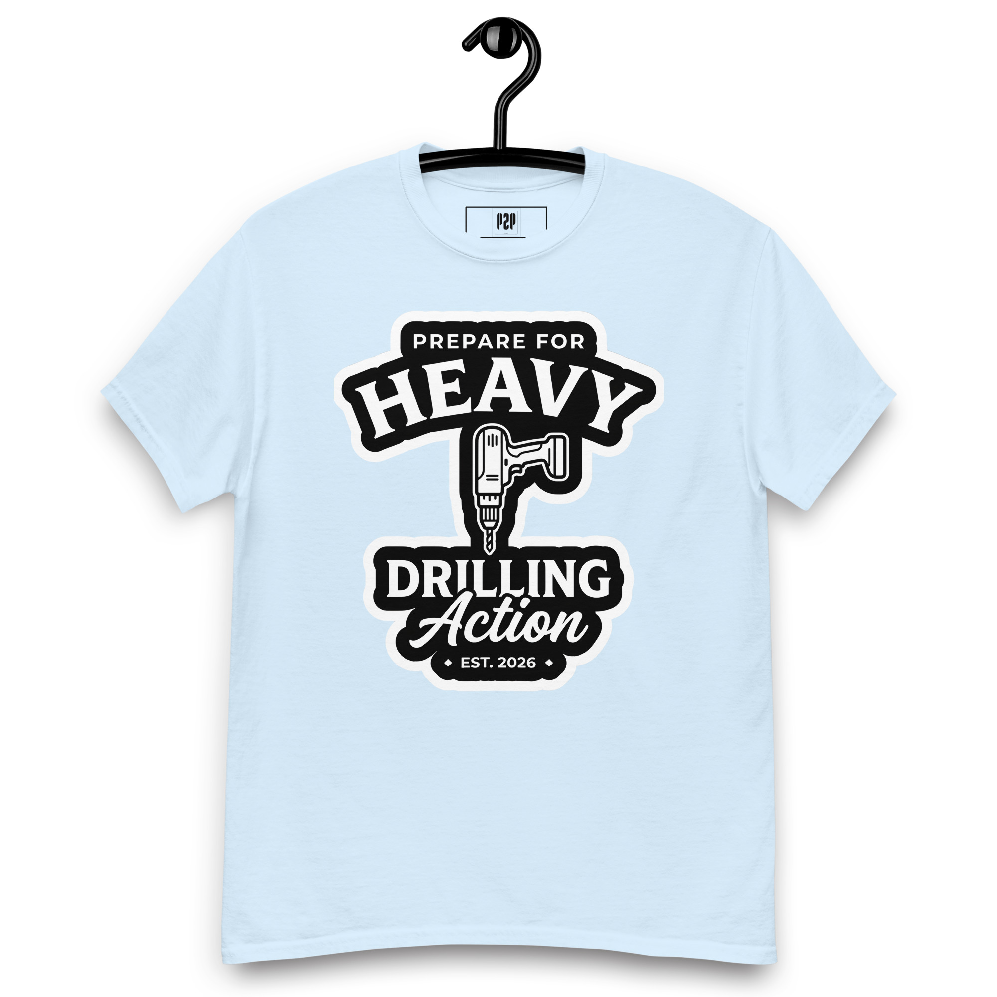 “HOPE YOU BROUGHT YOUR HARD HAT BECAUSE WE ARE ABOUT TO NAIL IT. If you are the type who knows exactly how to handle high-powered equipment, the PREPARE FOR HEAVY DRILLING ACTION tee is your new uniform. It is bold, incredibly cheeky, and perfectly engineered to make everyone in the room do a double-take. Whether you are clocking in for a long shift or just laying down the groundwork for the weekend, this spicy little number lets them know you mean business.
