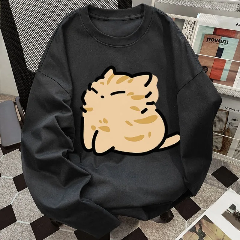Big comfort, subtle aesthetic. This heavyweight cotton long-sleeve tee features a clean, minimalist cartoon cat design. Loose fit and high quality fabric. The ultimate urban essential for cool-weather layering. Cop the cozy drip!