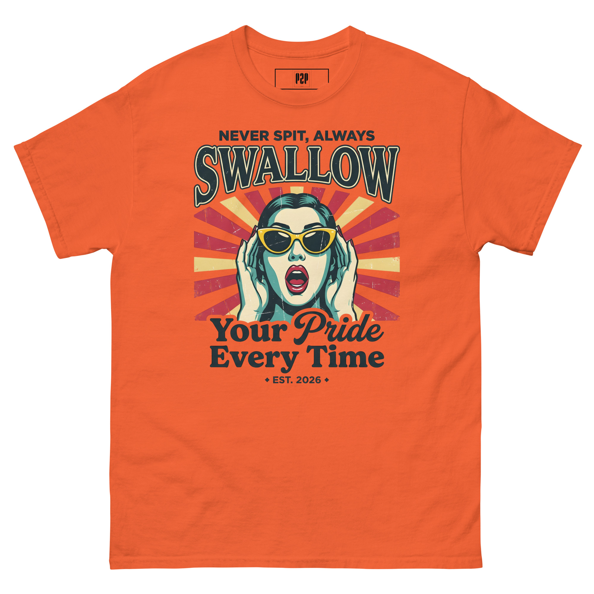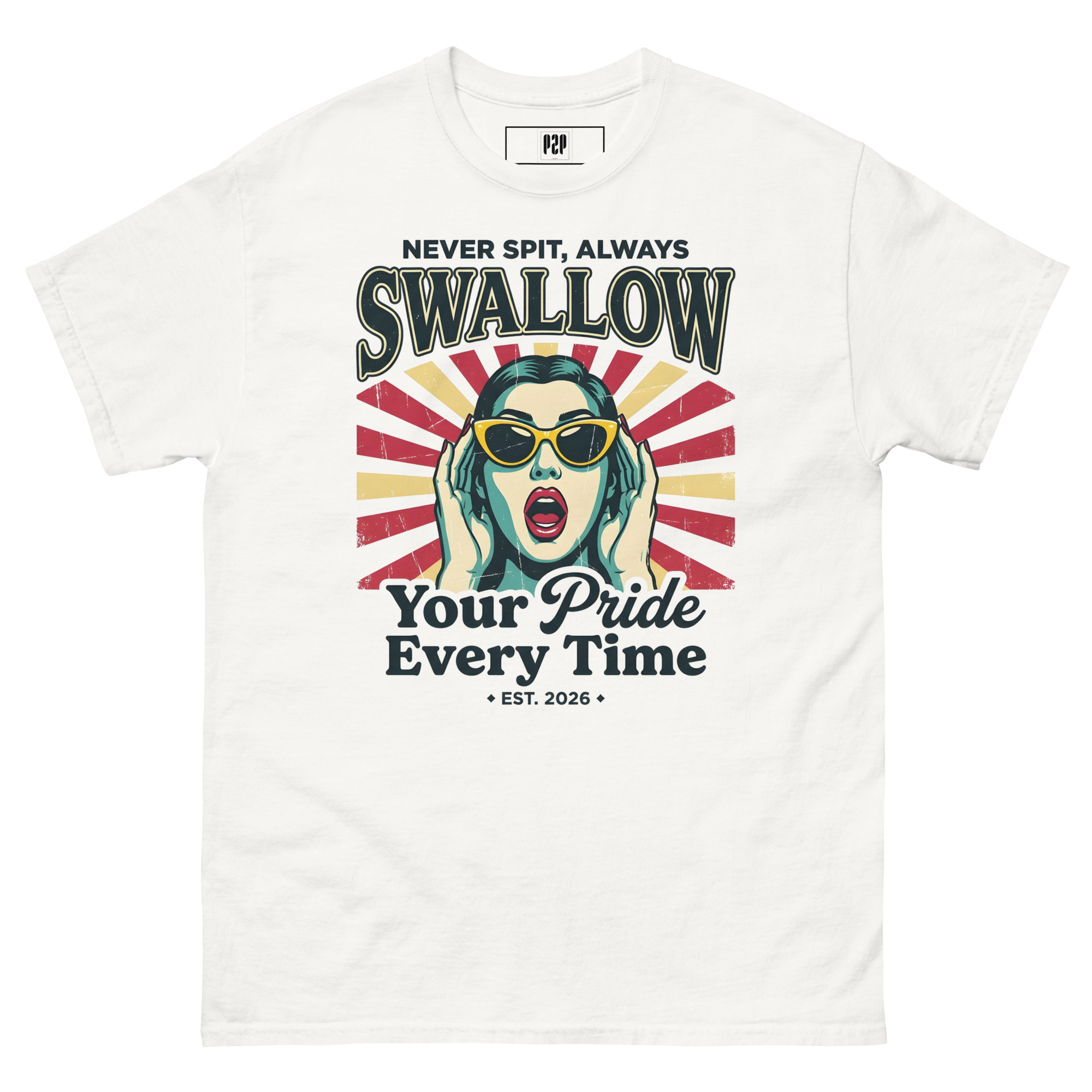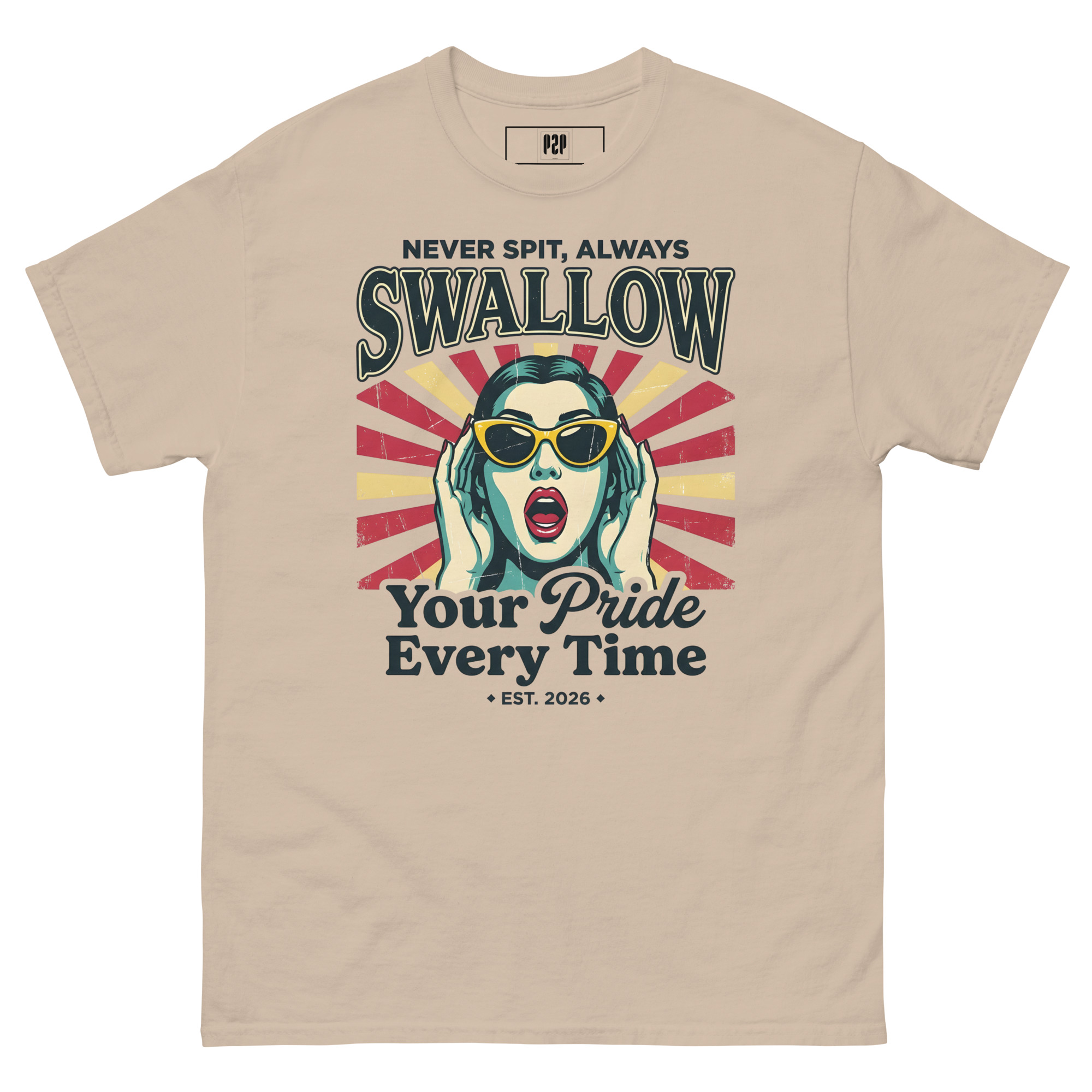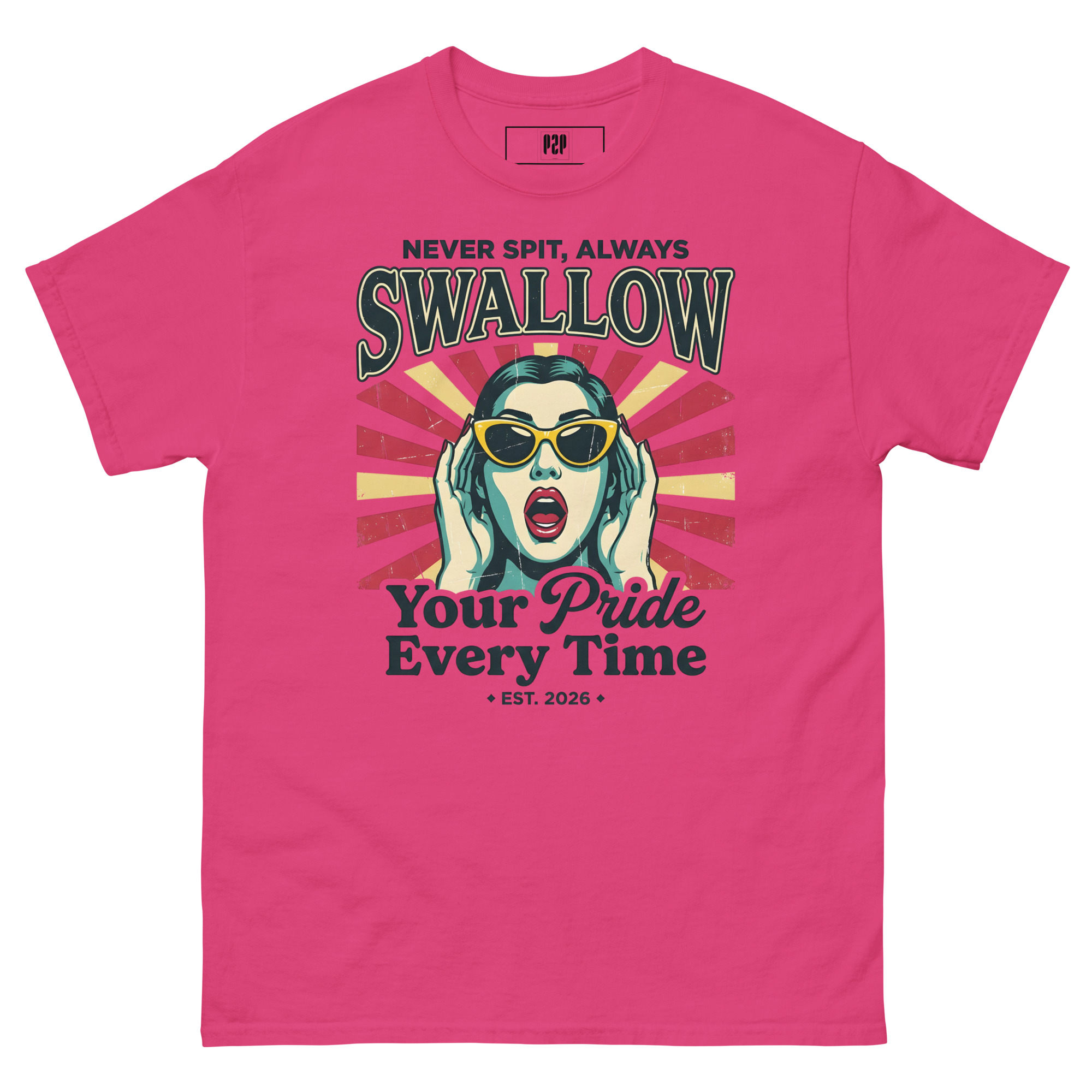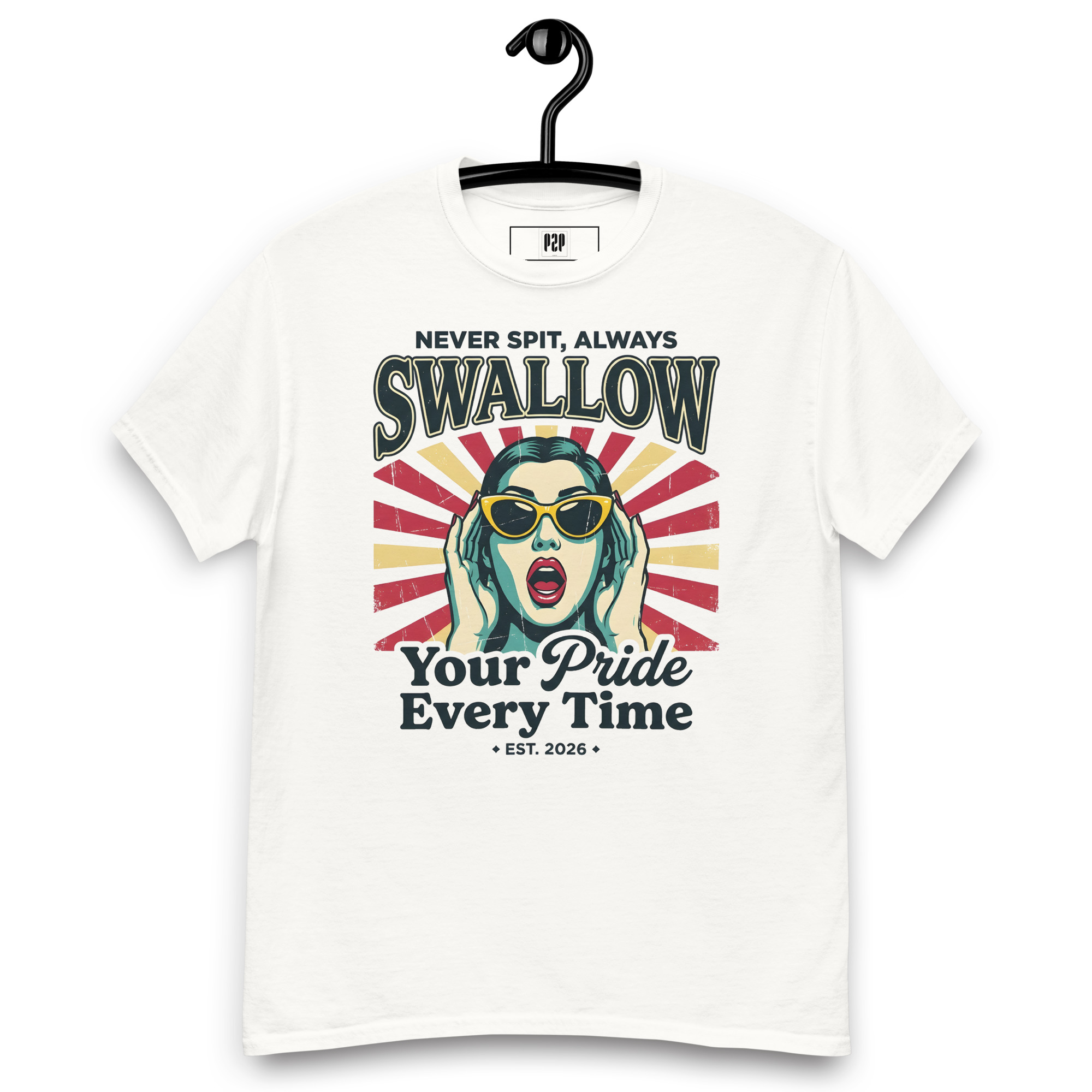 SOME ADVICE IS JUST HARD TO GULP DOWN. 🥵 If you love a good gasp followed by a dirty smirk, this is your new favorite piece of clothing. Let’s be real, nobody likes a quitter, so why not go all the way… and swallow your pride? This cheeky double-entendre tee is guaranteed to make them look twice and laugh out loud once they read the fine print. 💦