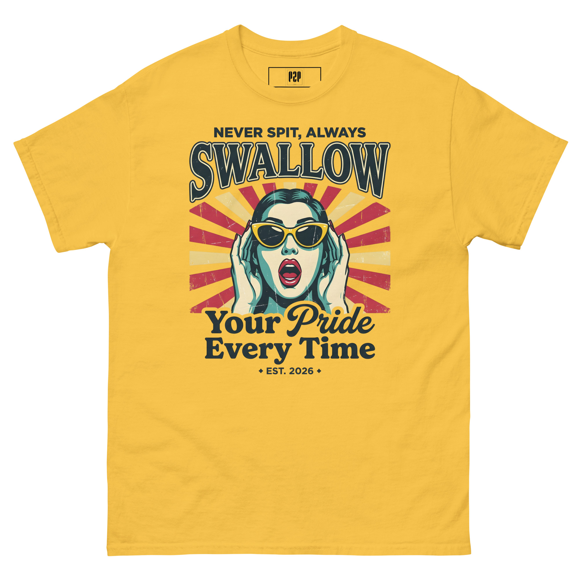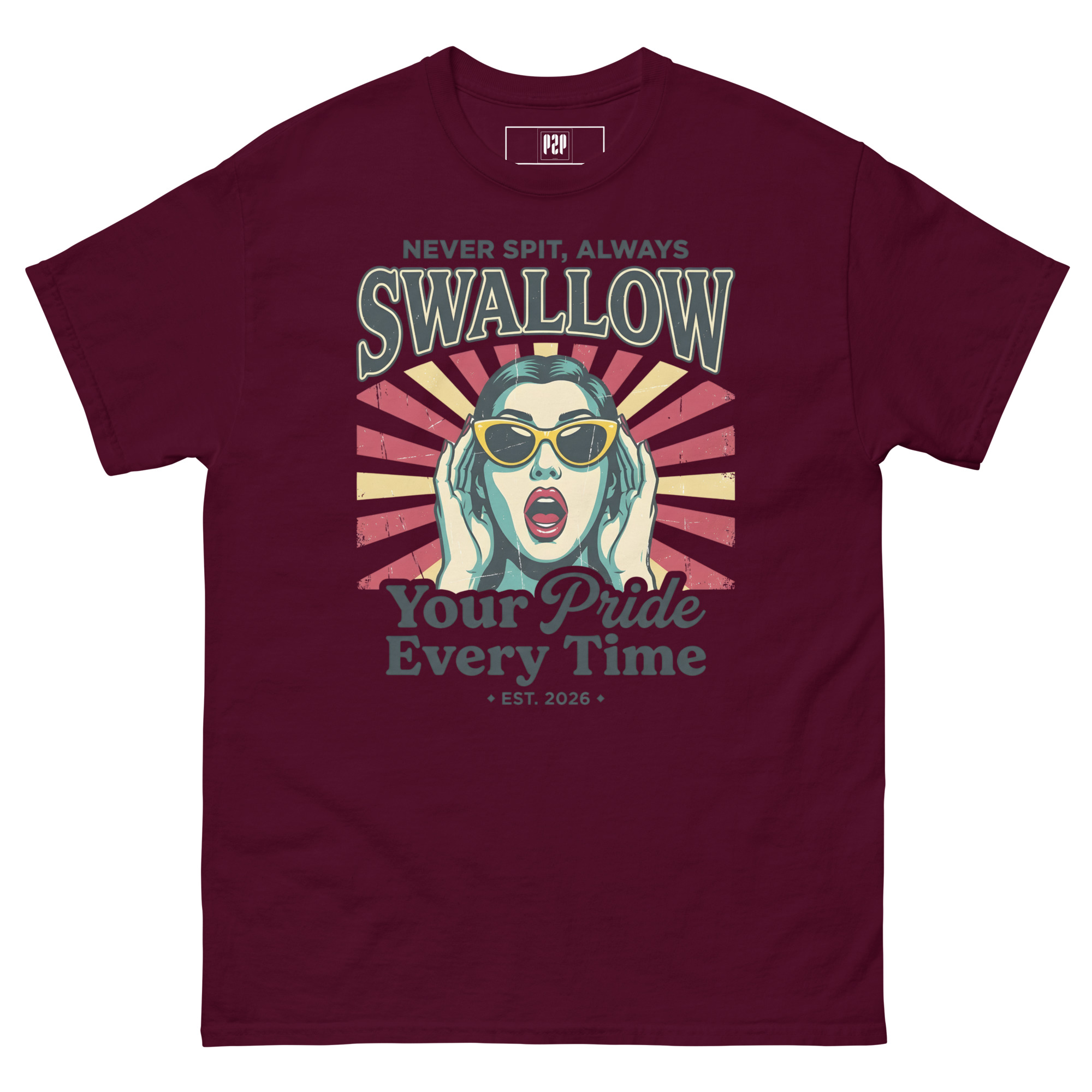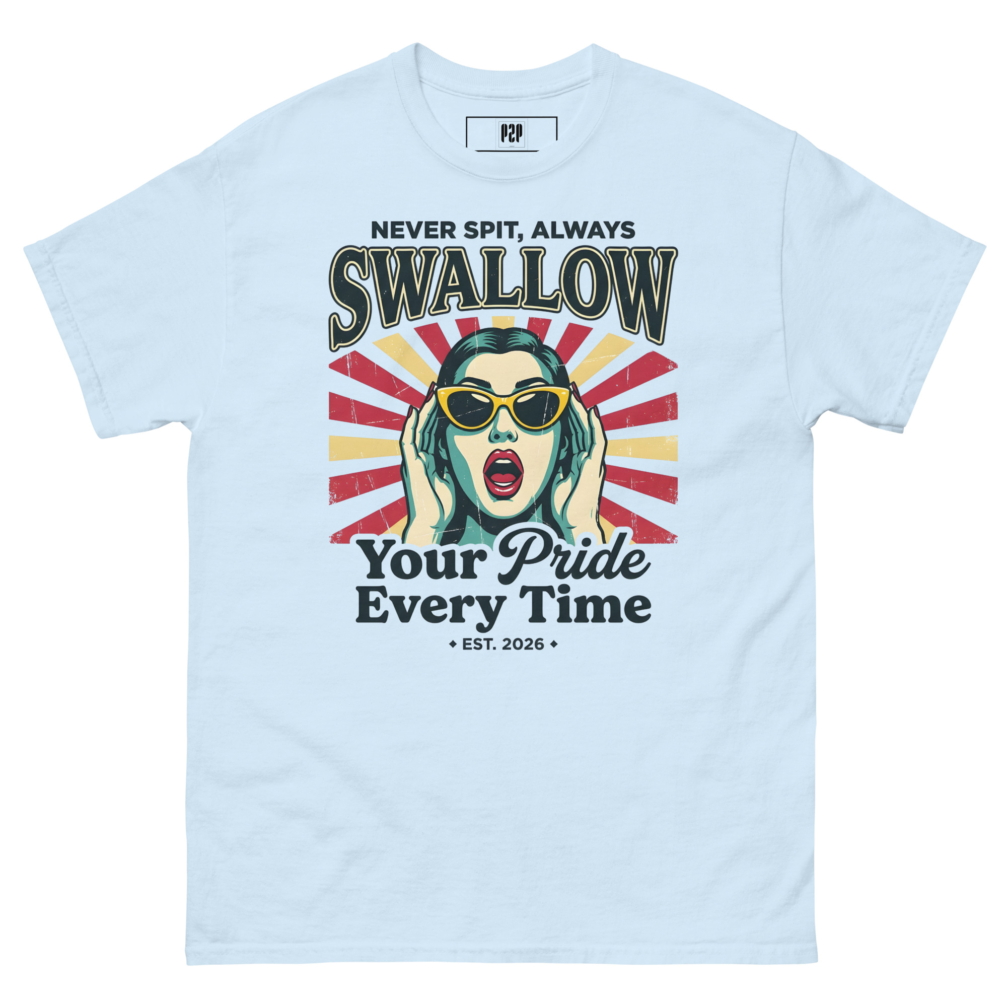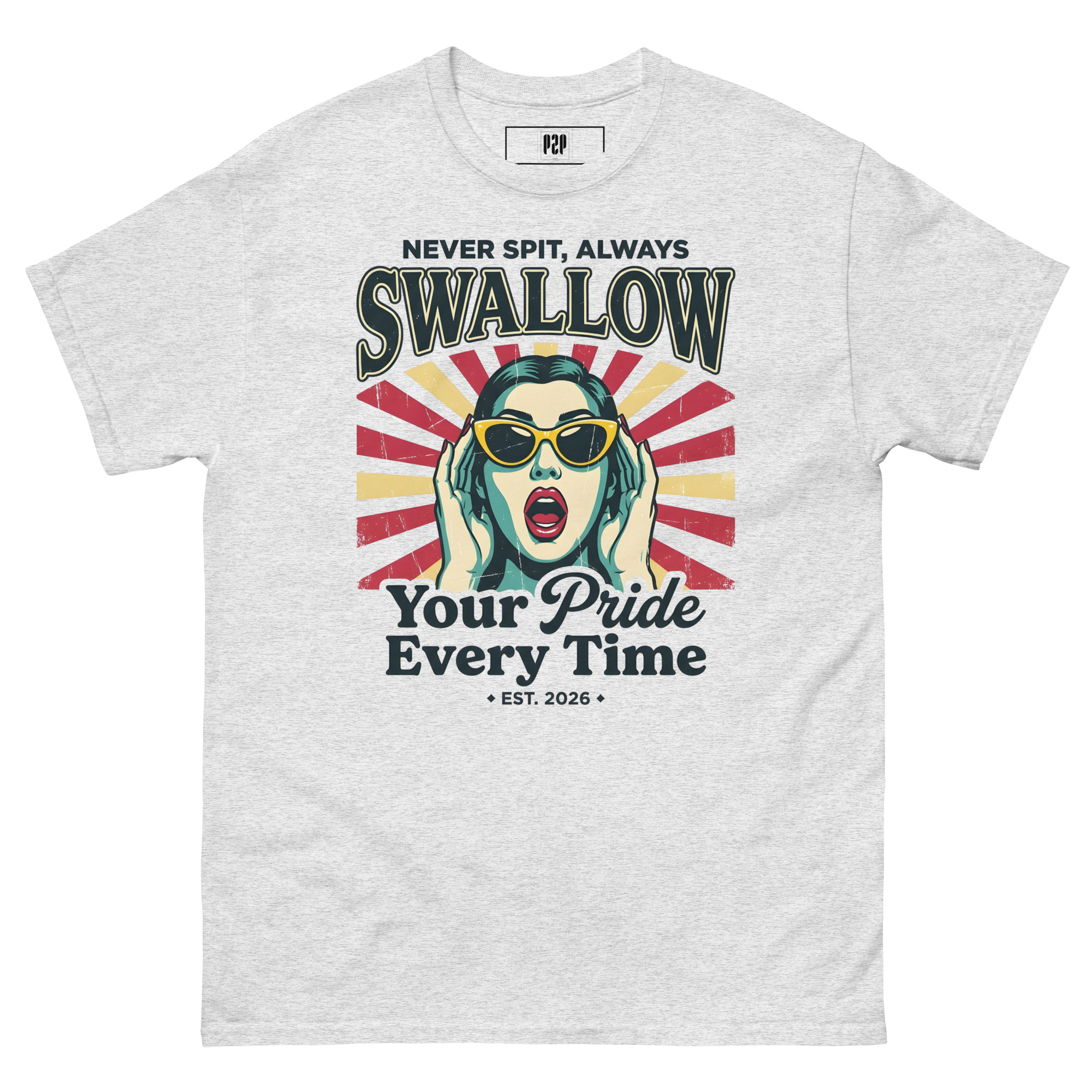 SOME ADVICE IS JUST HARD TO GULP DOWN. 🥵 If you love a good gasp followed by a dirty smirk, this is your new favorite piece of clothing. Let’s be real, nobody likes a quitter, so why not go all the way… and swallow your pride? This cheeky double-entendre tee is guaranteed to make them look twice and laugh out loud once they read the fine print. 💦