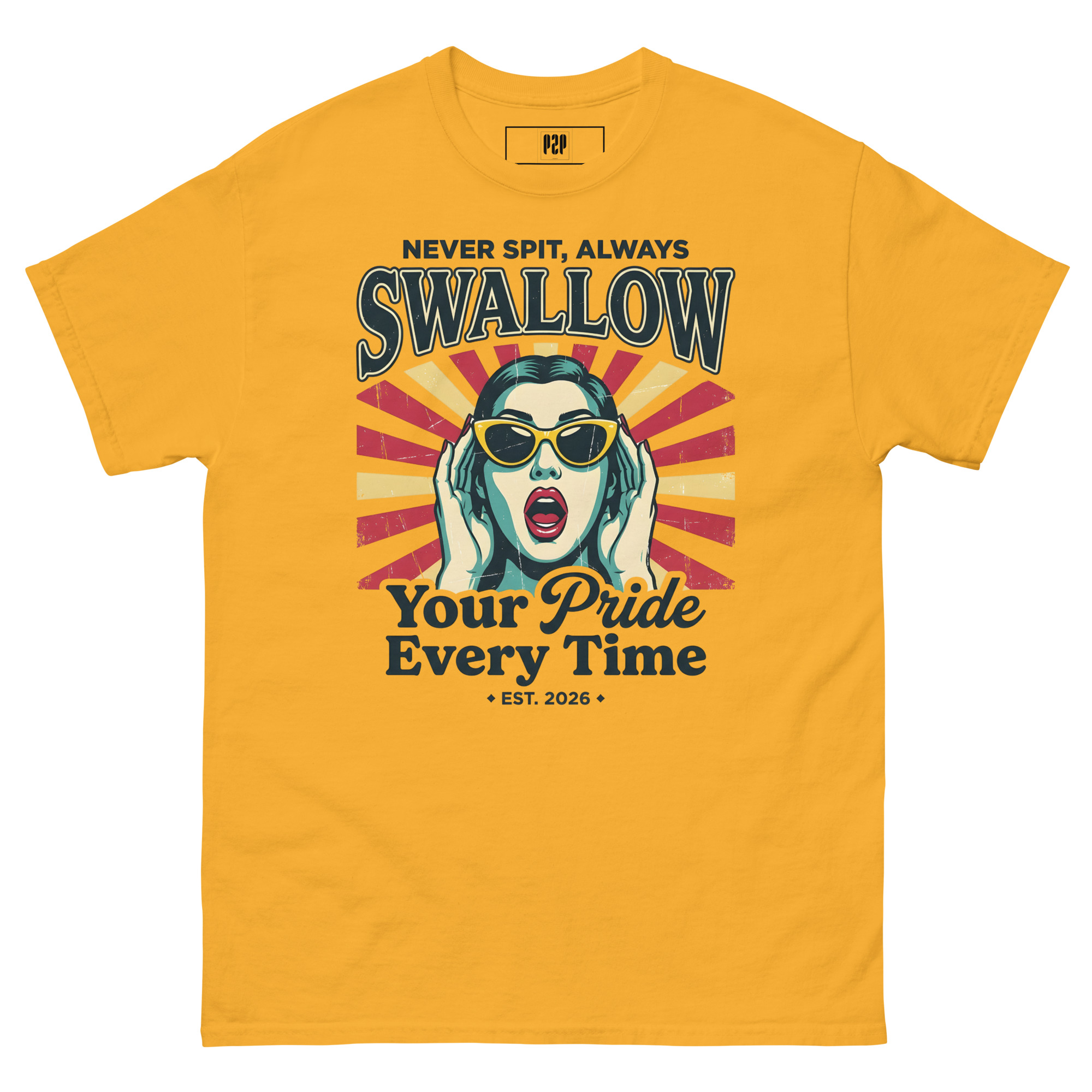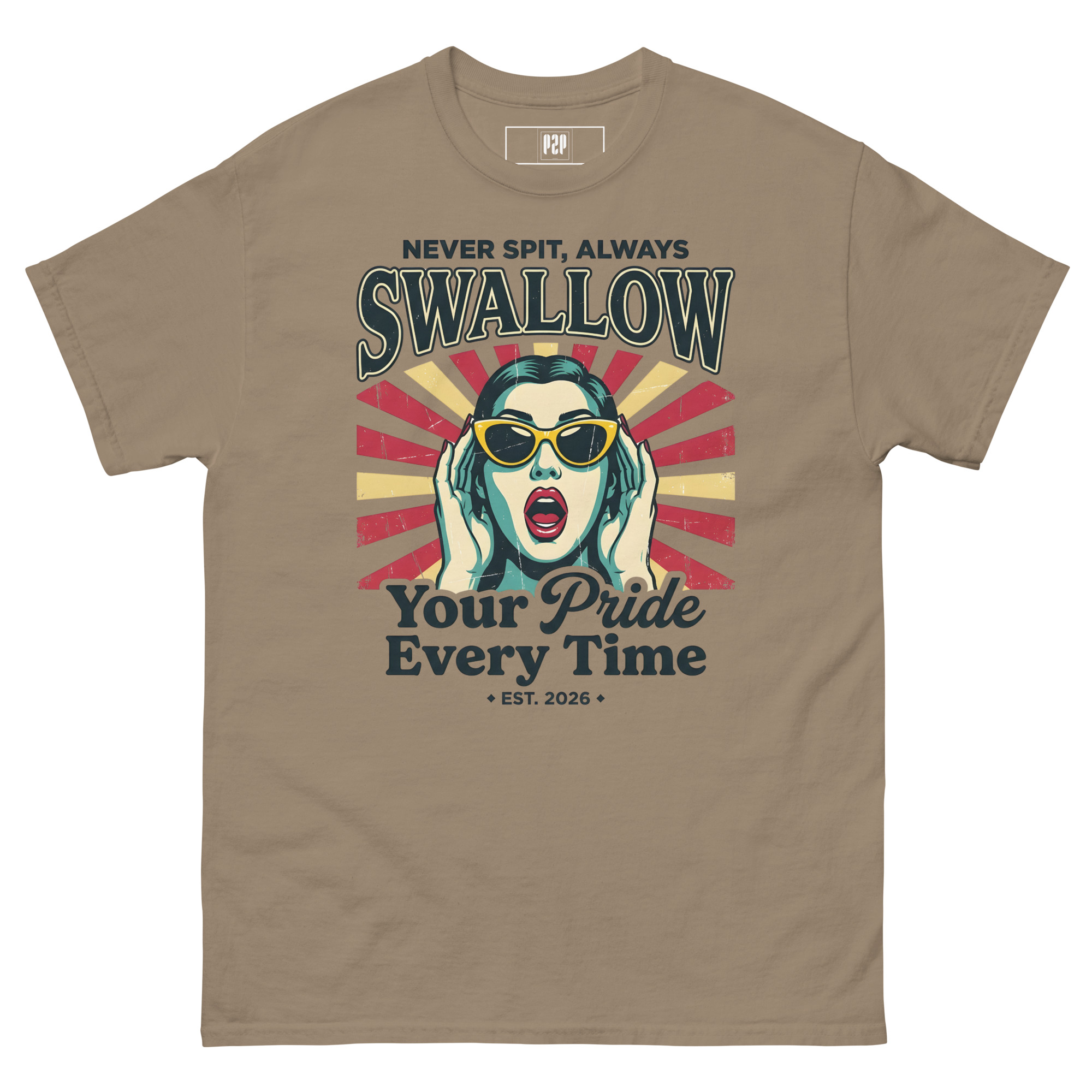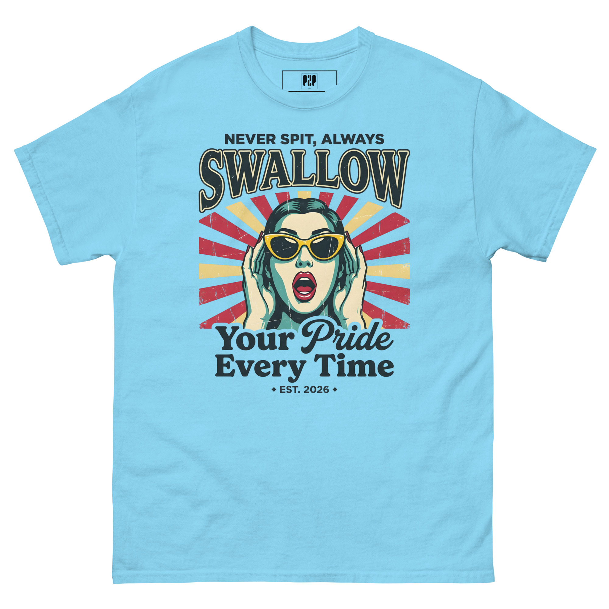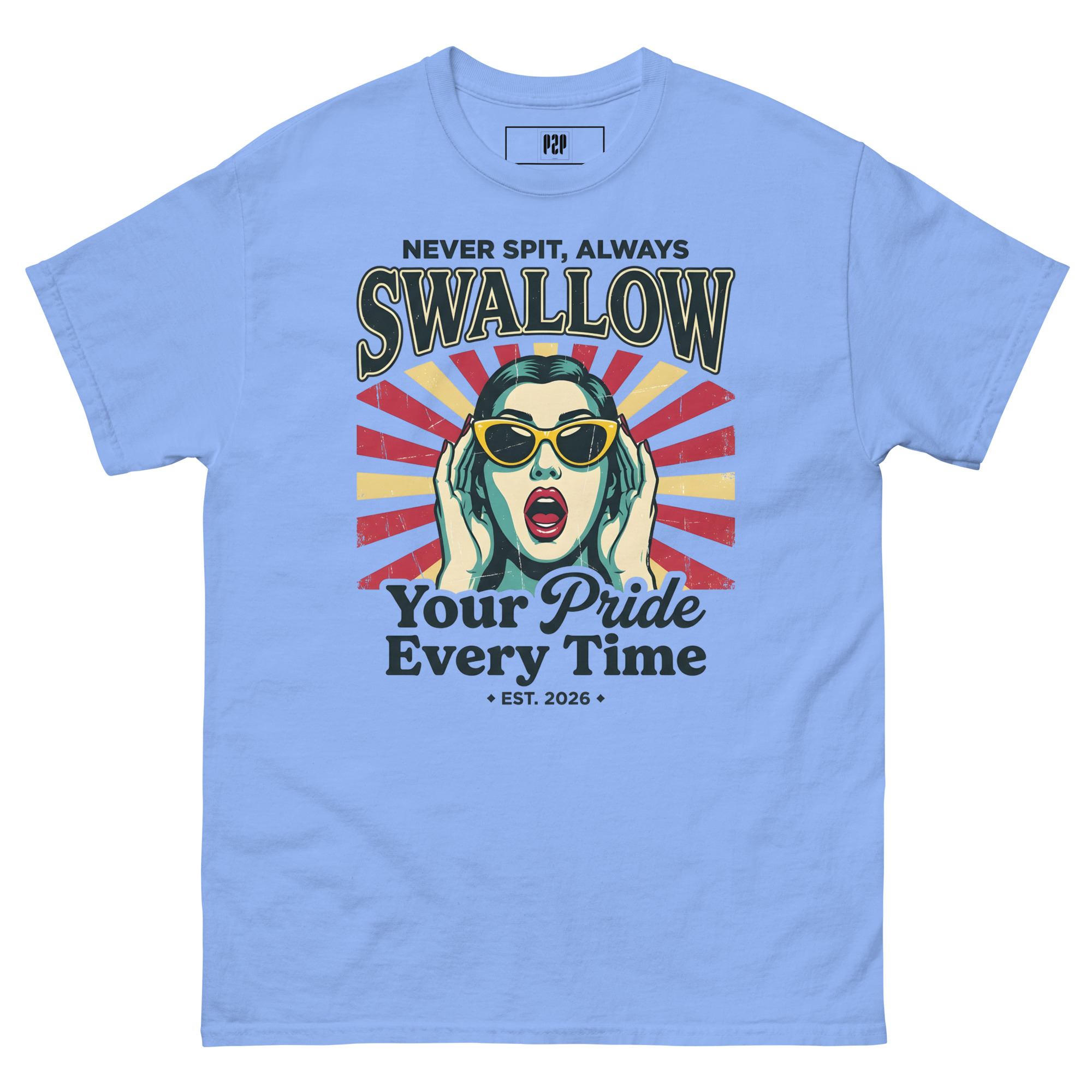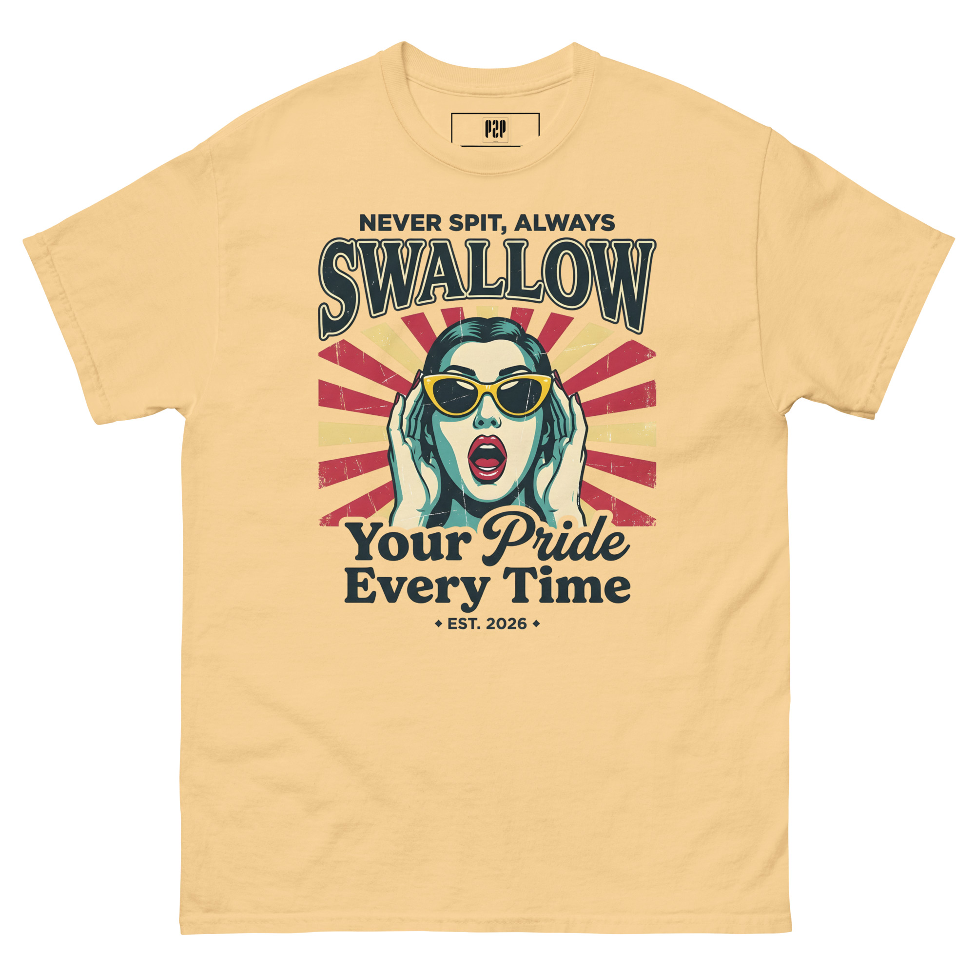 SOME ADVICE IS JUST HARD TO GULP DOWN. 🥵 If you love a good gasp followed by a dirty smirk, this is your new favorite piece of clothing. Let’s be real, nobody likes a quitter, so why not go all the way… and swallow your pride? This cheeky double-entendre tee is guaranteed to make them look twice and laugh out loud once they read the fine print. 💦