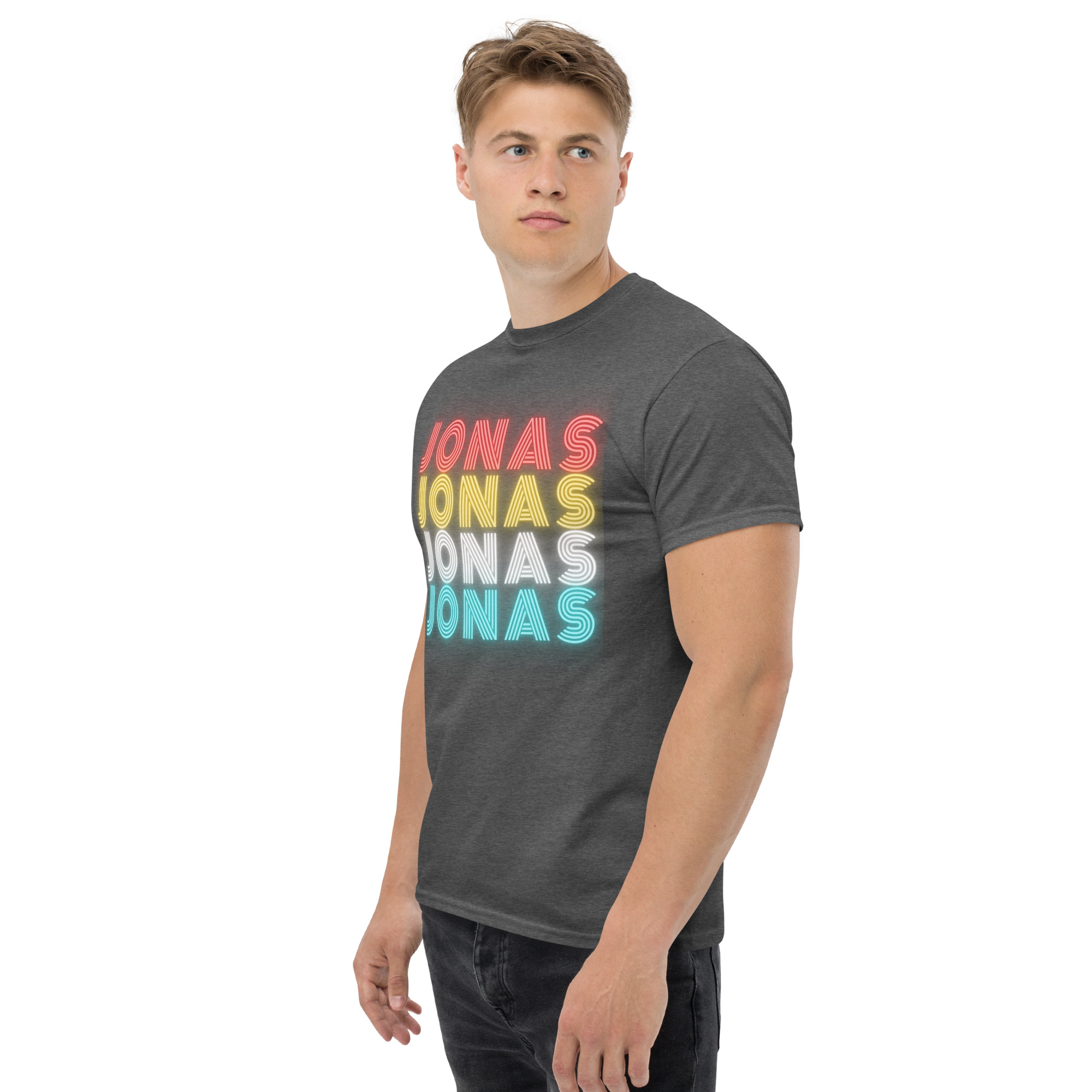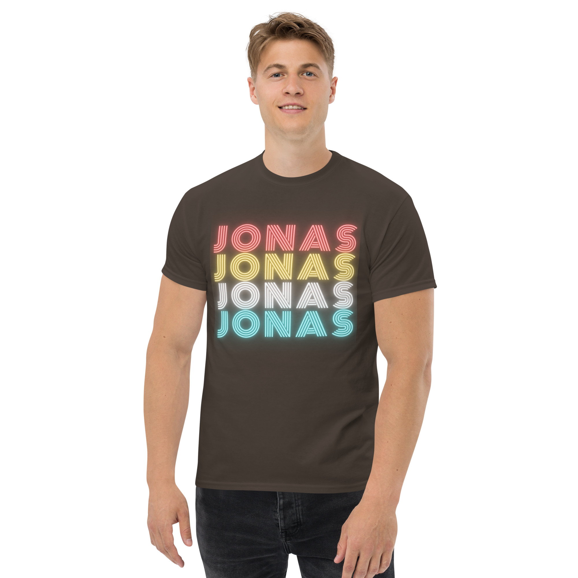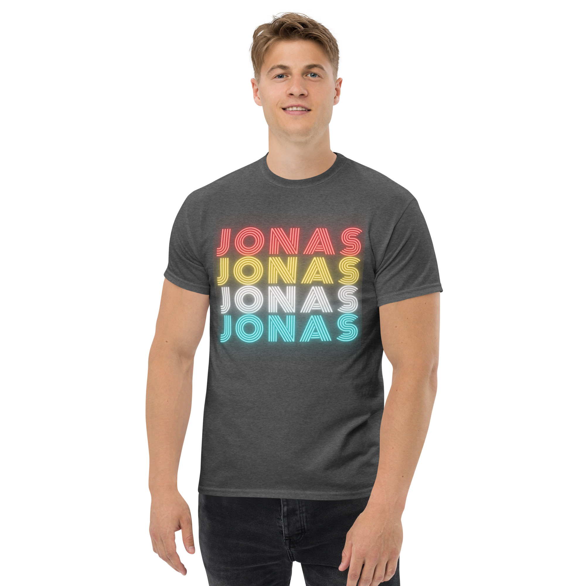 Step back in time with our retro-inspired Jonas T-shirt! Embodying the groovy vibes of the past, this vintage tee features a nostalgic silhouette reminiscent of classic 80s fashion. Perfect for those who appreciate a touch of retro flair in their wardrobe.