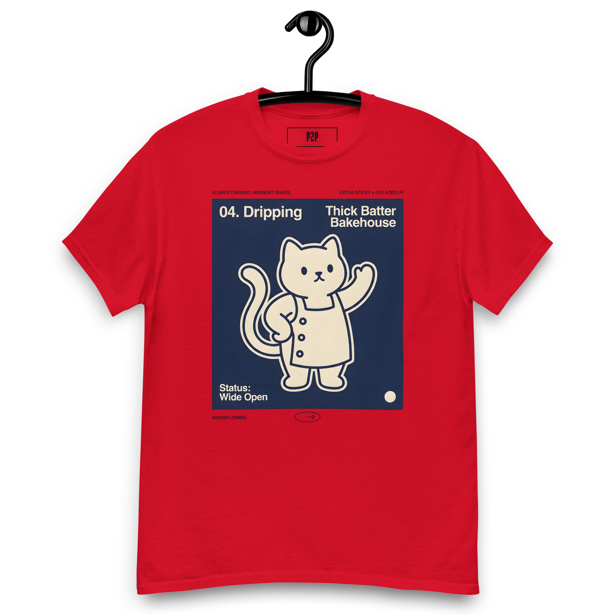 “WHO DOESN’T LOVE IT WHEN THINGS GET A LITTLE EXTRA STICKY? STATUS IS WIDE OPEN, BABE. WHETHER YOU ARE ALWAYS CRAVING A MIDNIGHT SNACK OR JUST READY TO SHOW OFF YOUR THICK BATTER, THIS PROVOCATIVE DRIPPING CAT TEE KNOWS EXACTLY HOW TO SATISFY YOUR SWEET TOOTH WITHOUT UTTERING A SINGLE DIRTY WORD. WINK WINK.